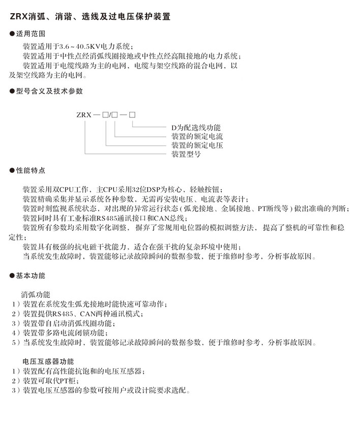 ZRX消弧、消諧、選線及過電壓保護(hù)裝置